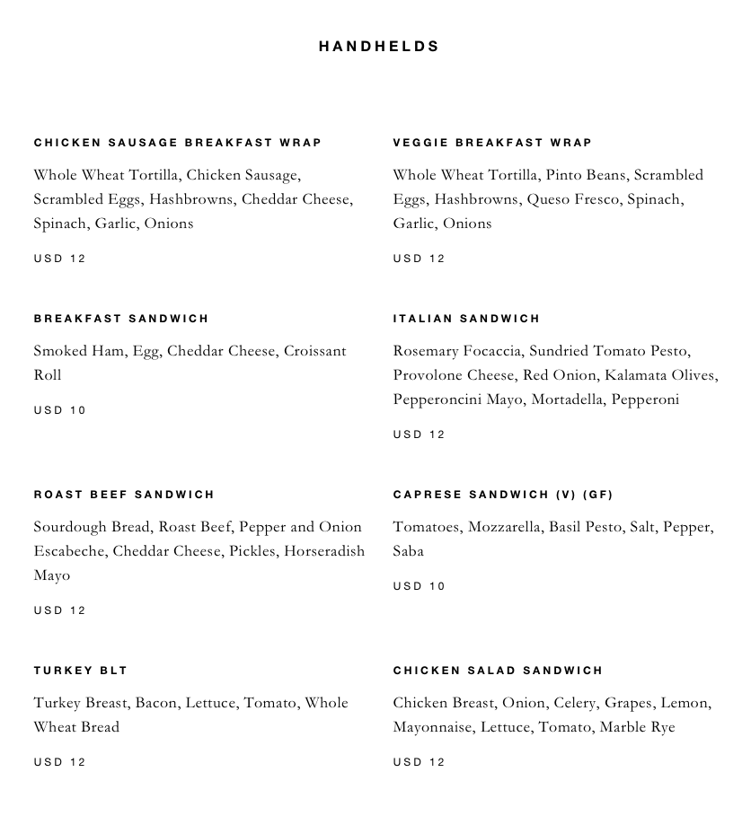 Overall, the menu supports quick order and takeout as well as casual dining with an emphasis on pastries, salads, sandwiches, and coffee-based drinks.